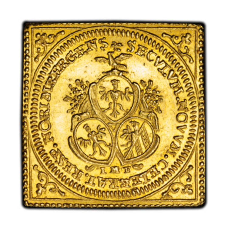 1700年に発行されたこのダカット クリッペは、神聖ローマ帝国時代のニュルンベルクで製造されました。ニュルンベルクは自由都市として、文化的・経済的に非常に重要な役割を果たしており、このコインはその繁栄を象徴するものです。羊と「PAX」というメッセージを通じて、当時の市民が平和を願っていたことが感じられる、歴史的意義深いコインです。