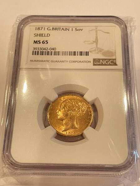 【SOLD】1871年 英国 ヴィクトリア ソブリン金貨 MS65 NGC
