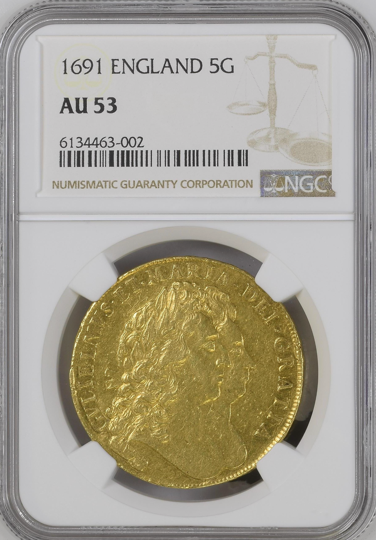 1691幎 è±åœð¬ð§ ãŠã£ãªã¢ã ïŒã¡ã¢ãªãŒ 5ã®ããŒé貚 NGC AU53