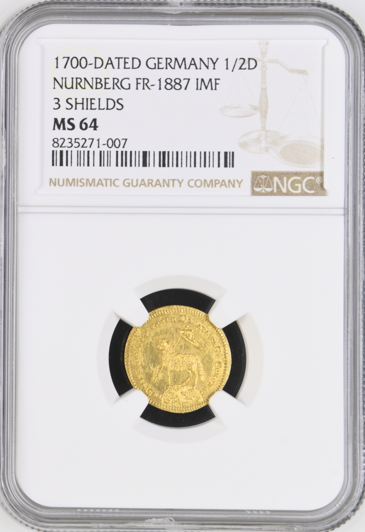 1700年 ドイツ🇩🇪 ニュルンベルク 1/2ダカット金貨 NGC MS64 準最高鑑定